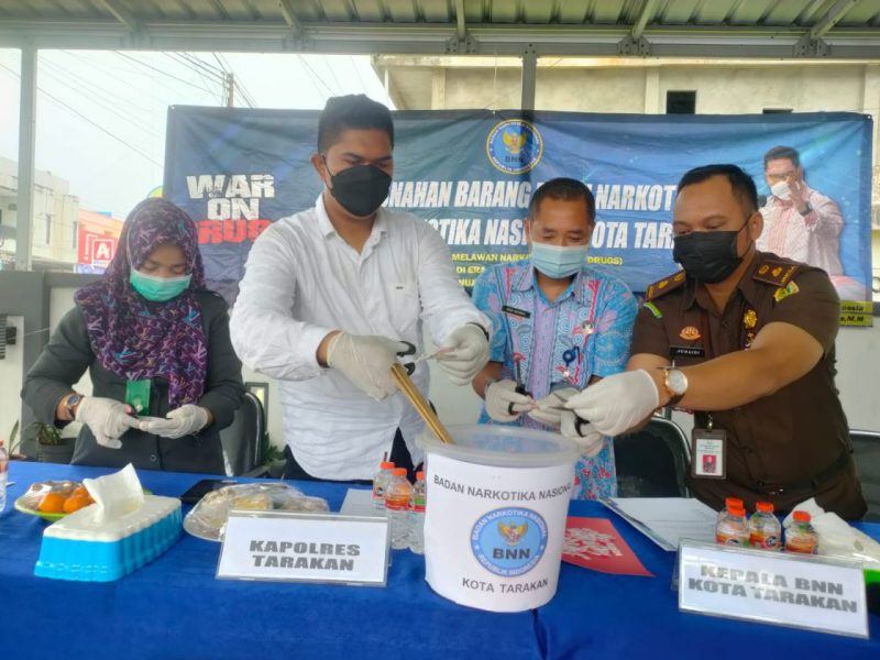 Saat dikonfirmasi, Kepala BNNK Tarakan Agus Sutanto pemusnahan tersebut merupakan hasil penangkapan pada 5 Januari 2022 lalu. Adapun 10 bungkus sabu disisihkan untuk laboratorium dengan total 0,7 gram. Barang bukti lain, 5 bungkus sabu disisihkan untuk persidangan dengan berat 0,40 gram.