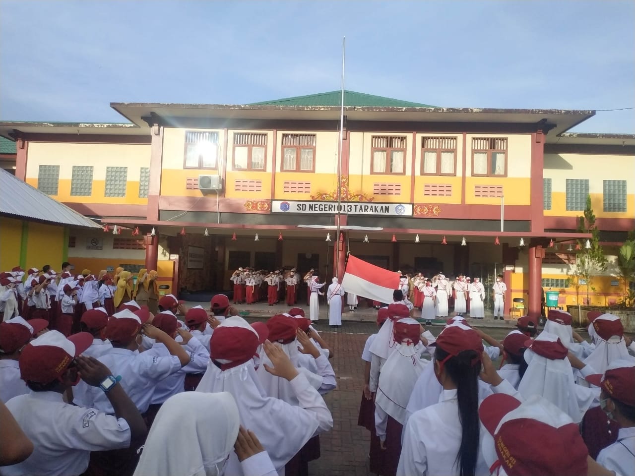 Mulyono juga menyoroti penampilan karya siswa-siswi SDN 013 Tarakan, seperti tari-tarian dan paduan suara, yang merupakan hasil dari berbagai kejuaraan yang pernah diikuti oleh peserta didiknya.