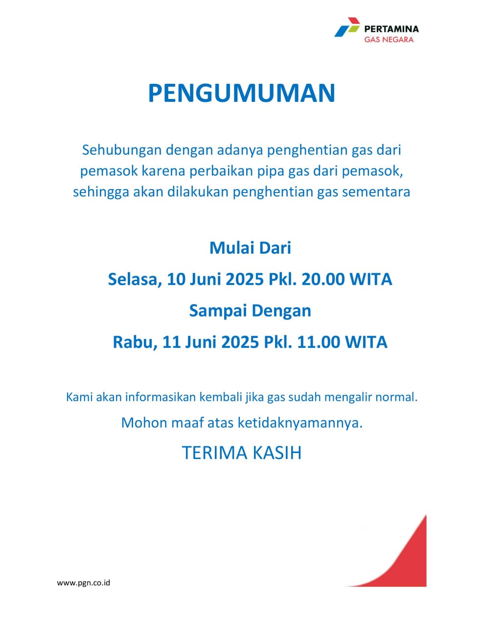 Kami dari Organisasi Masyarakat di Kota Tarakan menyampaikan rasa kecewa dan keberatan atas penghentian pasokan gas alam yang dilakukan oleh PGN pada 10–11 Juni 2025. Keputusan sepihak tanpa mitigasi ini berdampak luas terhadap kehidupan masyarakat yang sudah sangat bergantung pada gas alam untuk kebutuhan harian.