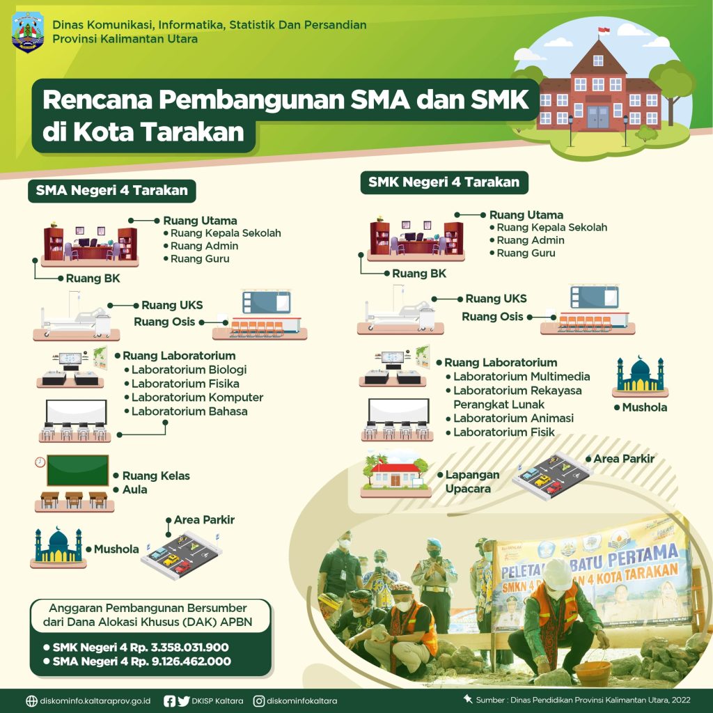 Gubernur mengungkapkan, pendanaan awal rencana pembangunan kedua sekolah tersebut bersumber dari Dana Alokasi Khusus (DAK) APBN sebesar Rp. 3.358.031.900 untuk SMK Negeri 4 Tarakan dan Rp. 9.126.462.000 untuk SMA Negeri 4 Tarakan. Tujuannya, untuk membantu mendanai kegiatan khusus yang merupakan urusan daerah sesuai dengan prioritas nasional. Hal ini berdasar Undang-Undang (UU) 33 Tahun 2004 tentang Perimbangan Keuangan antara Pemerintah Pusat dan Daerah.